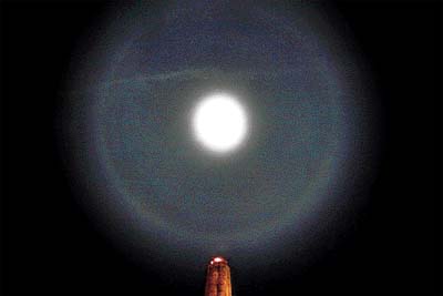 Menurut sejumlah situs di internet, fenomena cincin di sekitar bulan atau yang disebut halo tak mirip dengan halo matahari. Halo bulan biasanya tampak pada malam hari dan berwarna putih. Tetapi halo matahari adalah pelangi berbentuk lingkaran. Halo bulan disebabkan oleh pembiasan cahaya bulan yang merupakan cermin sinar matahari, dari kristal es di bagian atas atmosfer. Kristal es ini berasal dari pembekuan super tetesan air dingin dan ada di awan cirrus yang terletak di ketinggian 20.000 kaki atau lebih. Kristal ini berperilaku seperti permata pembiasan, dan mencerminkan ke arah yang berbeda.