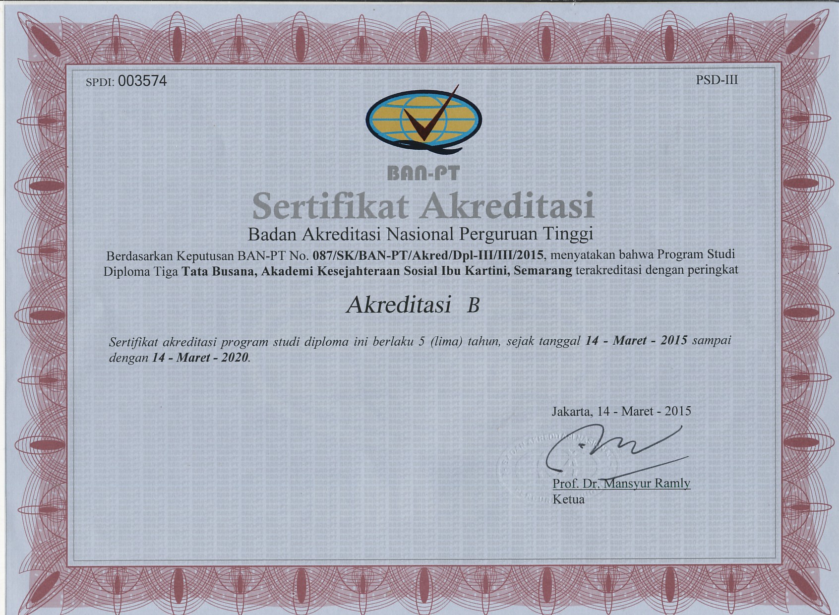 Download SERTIFIKAT Prodi Tata Busana No. 087/SK/BAN-PT/Akred/Dpl-III/III/2015