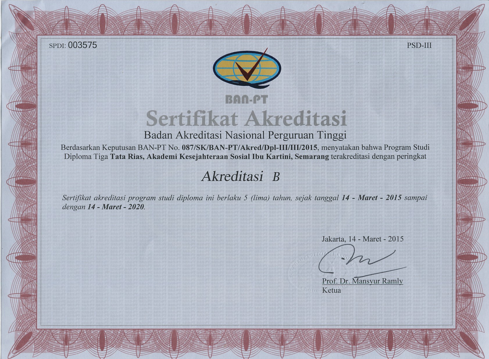 Download SERTIFIKAT Prodi Tata Rias No. 087/SK/BAN-PT/Akred/Dpl-III/III/2015