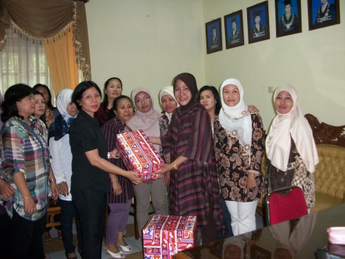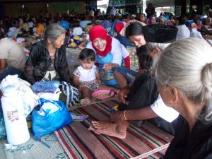 Direktur AKS Ibu Kartini ditengah-tengah pengungsi korban letusan Merapi |